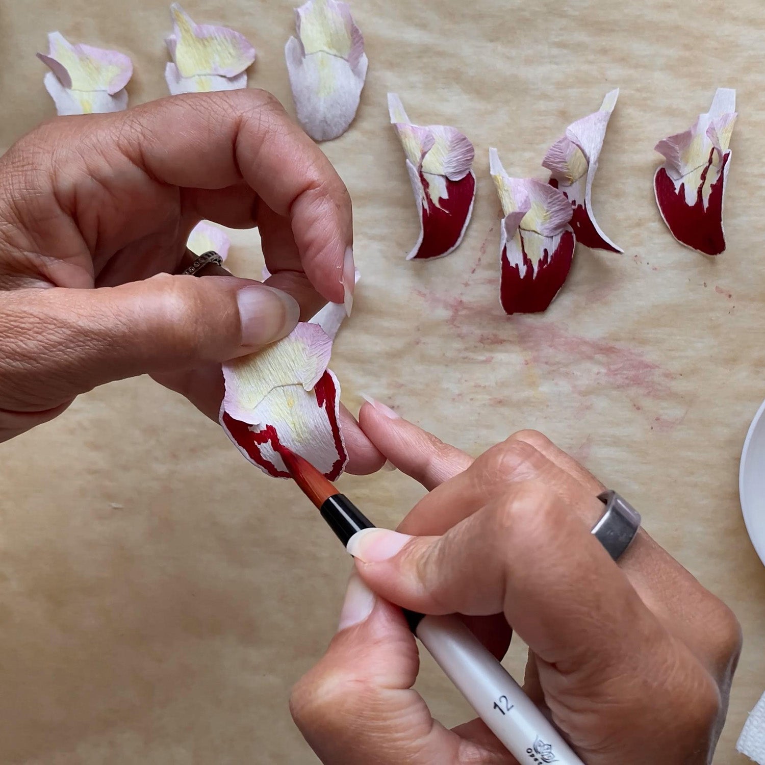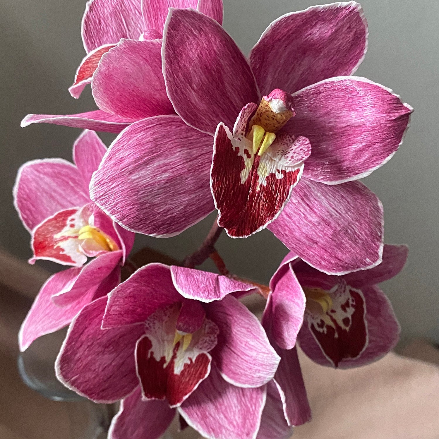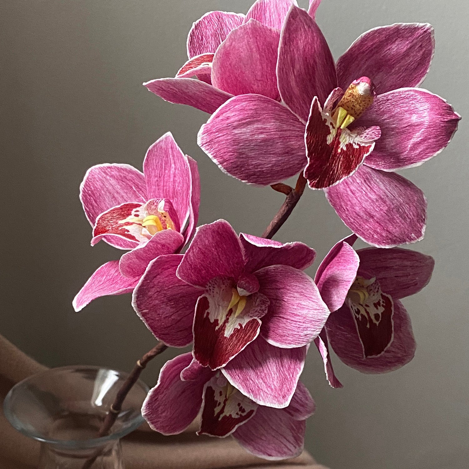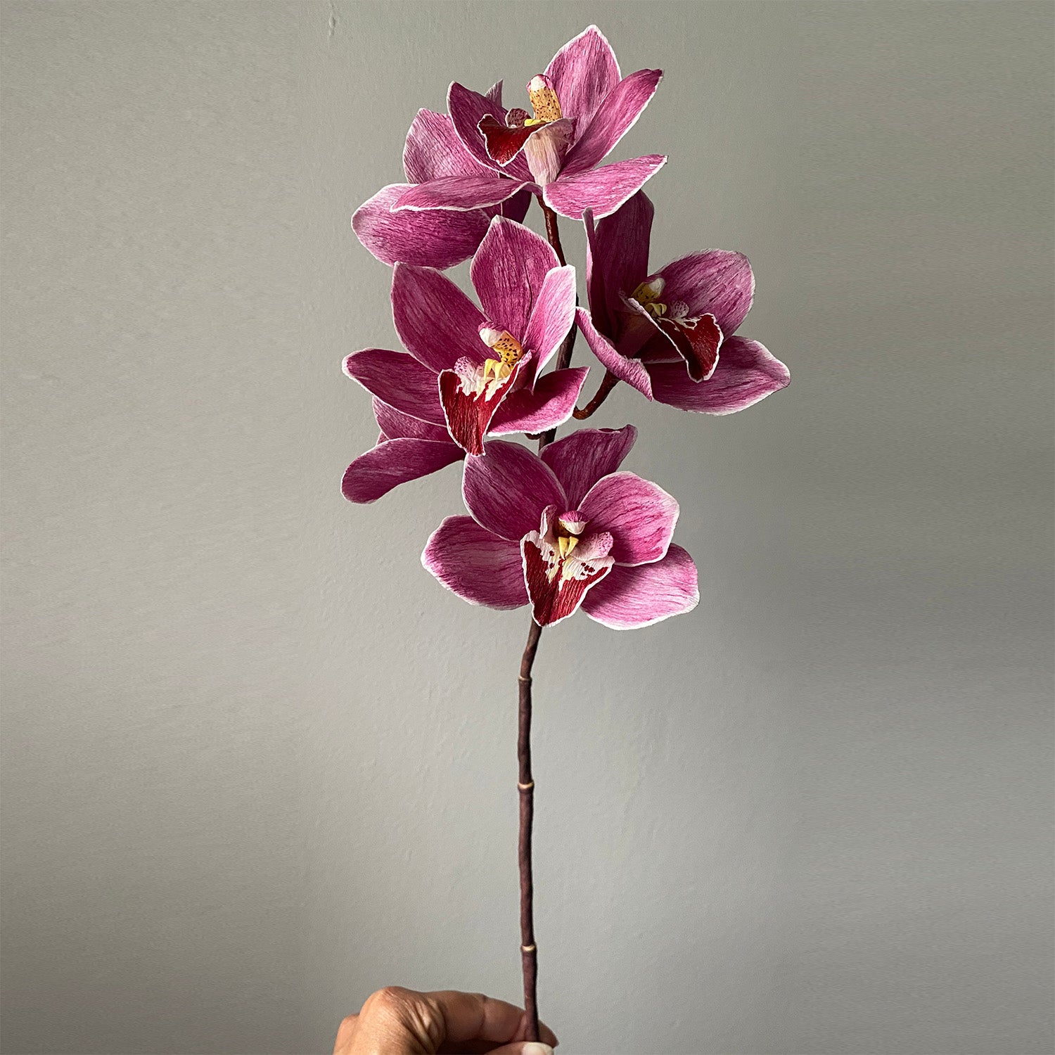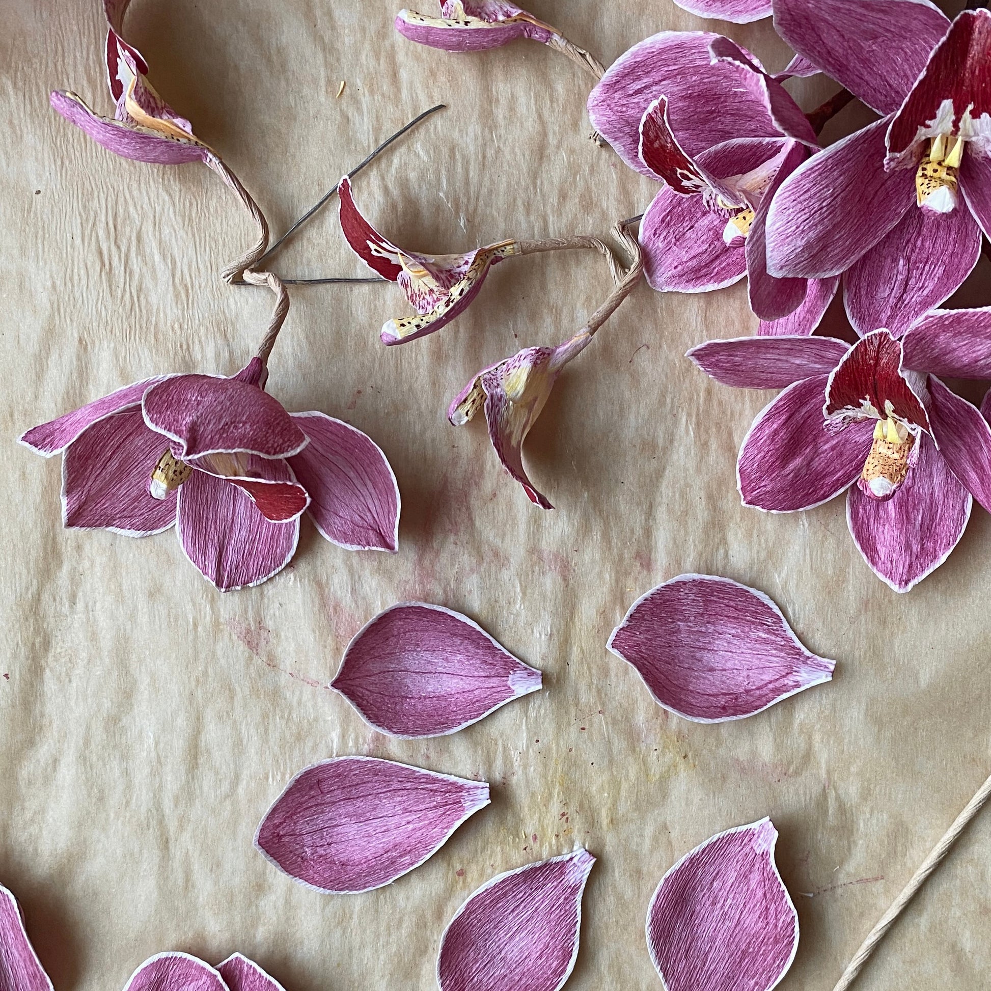 The Little Fireball Cymbidium Course. Cymbidium orchids represent purity, morality and friendship. Also called 'boat orchids', the cymbidium orchid feature a unique shape to their 'lips' similar to a boat. In my search for an orchid that would feature as many teaching points as possible, I found the "Little Fireball". Unique to this flower are the deep reddish-purple coloration on its lips and striated magenta petals which make this flower pop in any arrangement. This is the first course I can say hosts quite a bit of painting, but it makes this flower come to life and I can promise you that when completed, anyone will be challenged to guess its made of paper!
