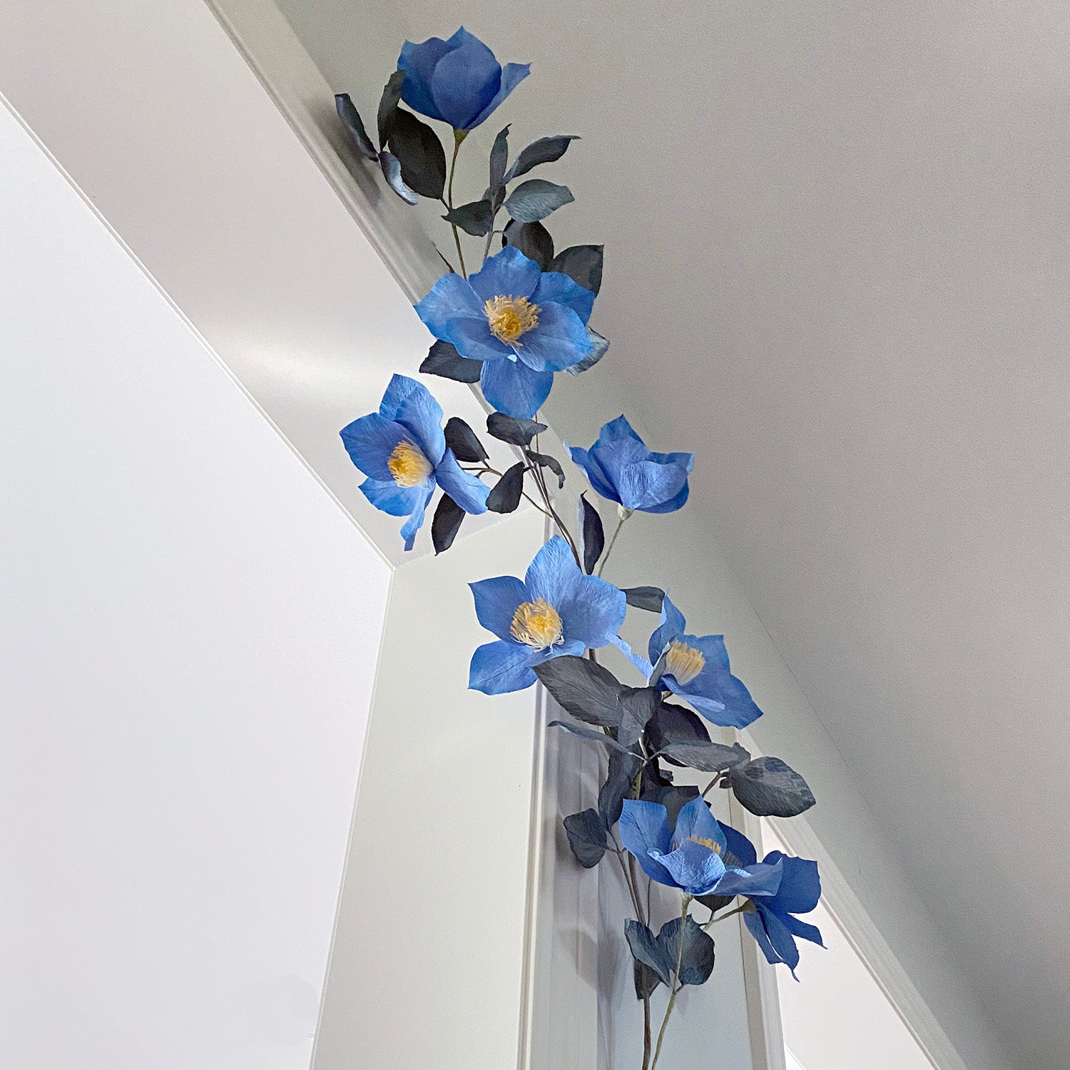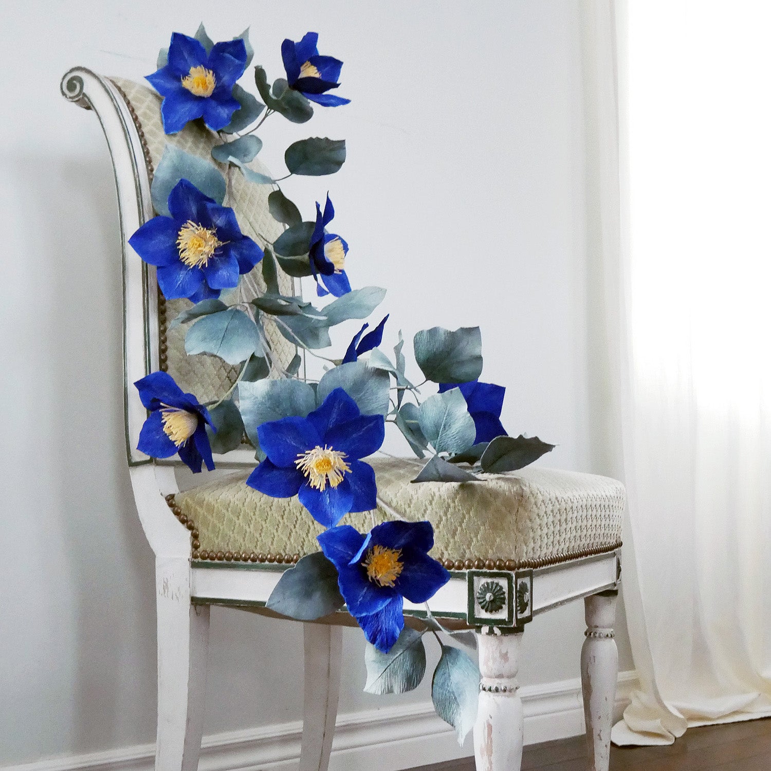 The Clematis vines are handcrafted from German doublette crepe paper and coloured with various techniques to achieve lifelike qualities.