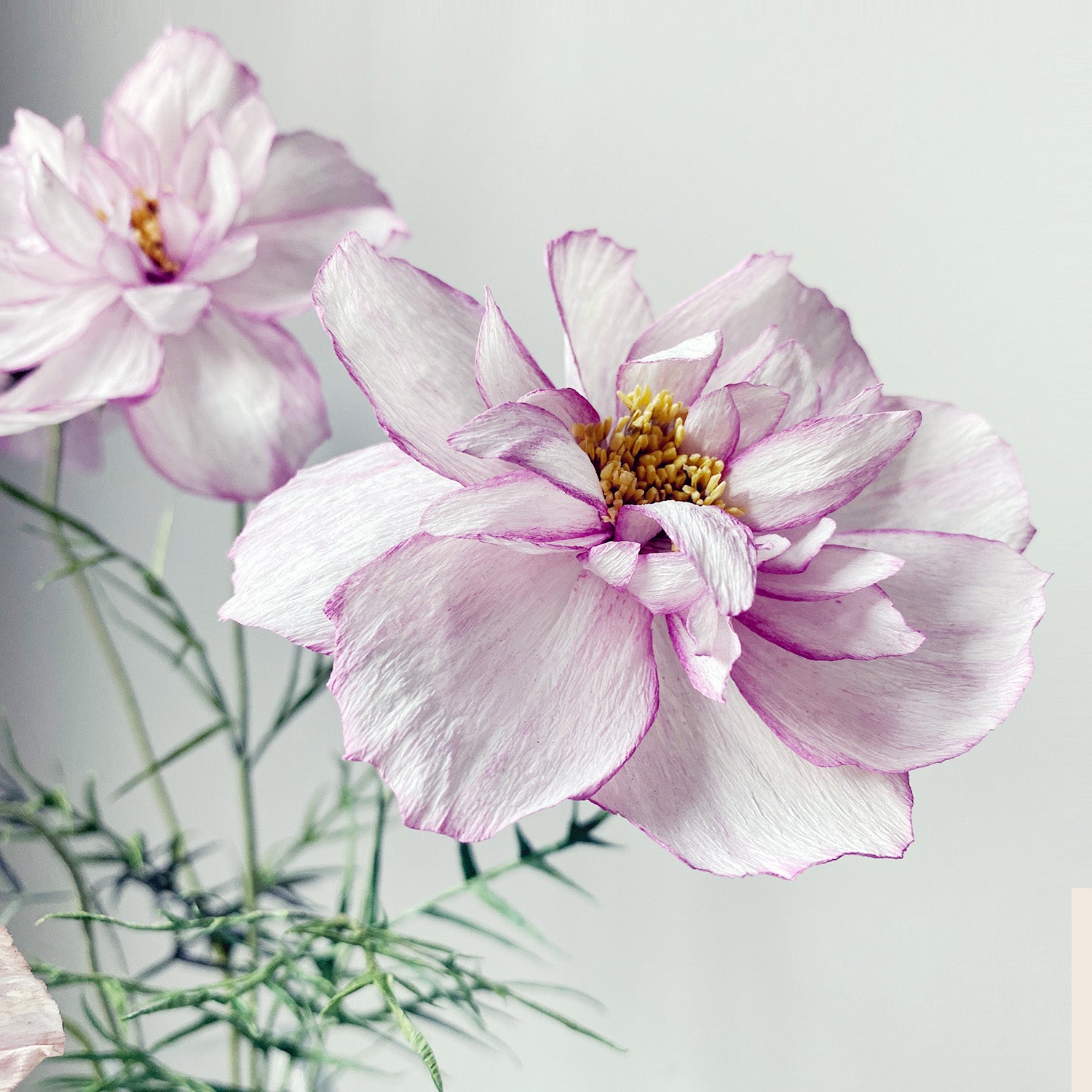 In this special zoom class, I will be instructing you on the creation of the Cosmos "Double Take". This flower features a 2 layers of white petals with pretty magenta margins. We’ll cover everything to make this flower from top to tail, colouring to shaping and of course, that darling little center that is the gateway to so many other field flowers.