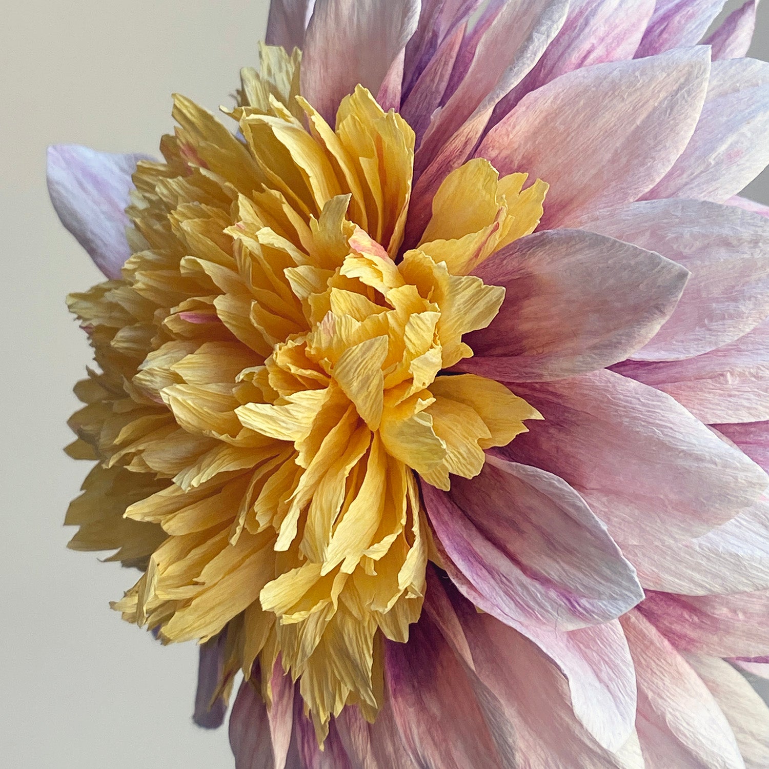 The Dahlia Polka is the happiest of flowers. Captivating and colourful, she exudes personality and originality with her fluffy yellow center and ombre fuchsia petals. I was awe struck when I first discovered this flower and couldn't wait to reproduce her in paper. There are two Dahlia Polkas available for purchase (each sold separately).