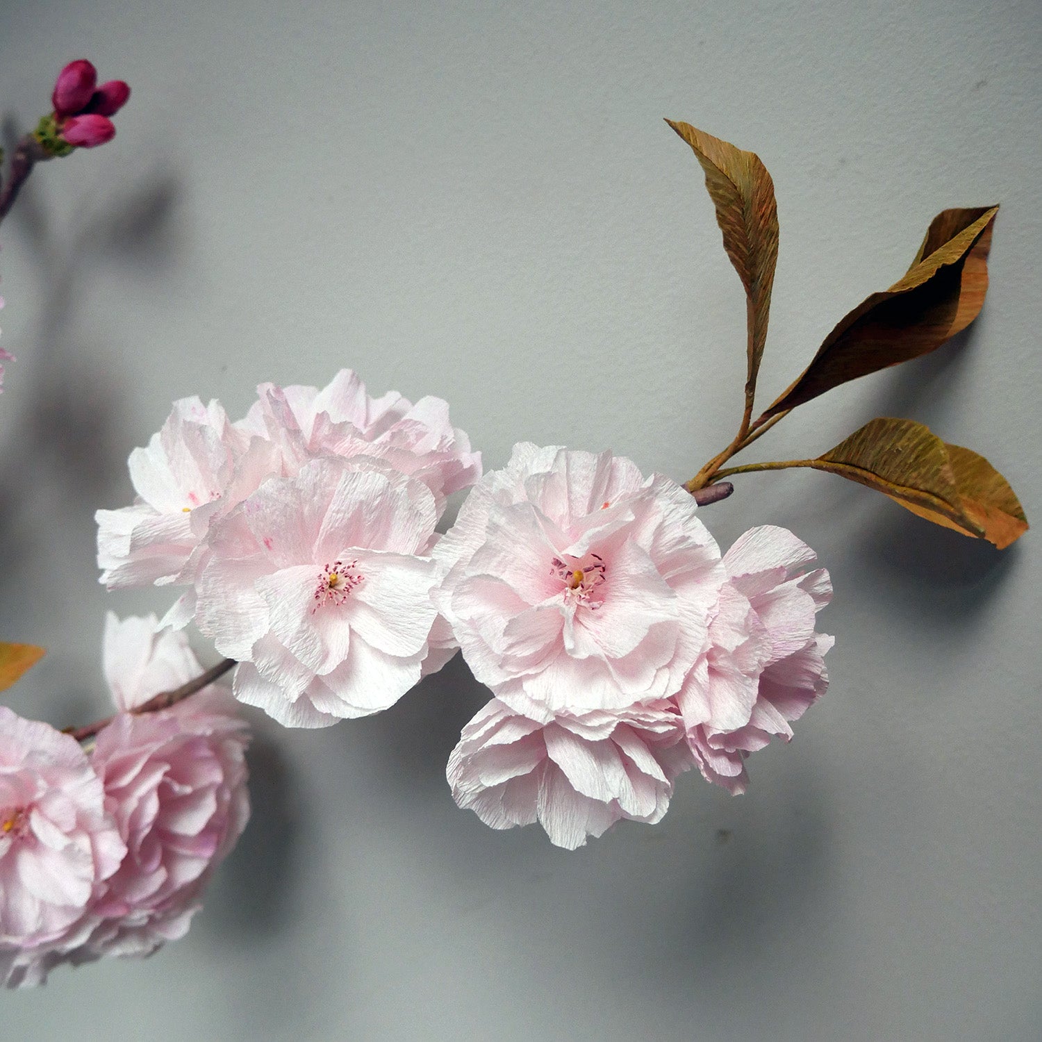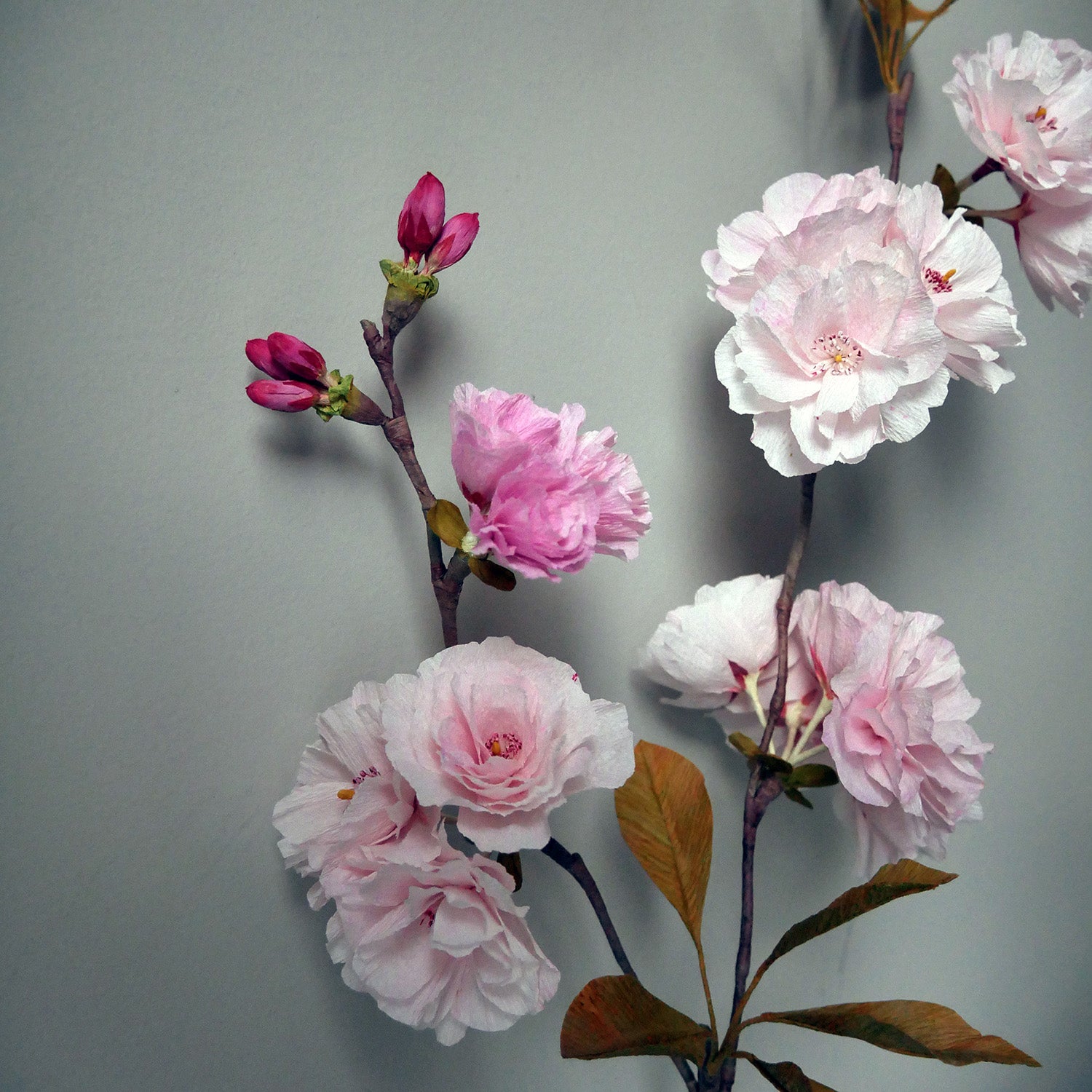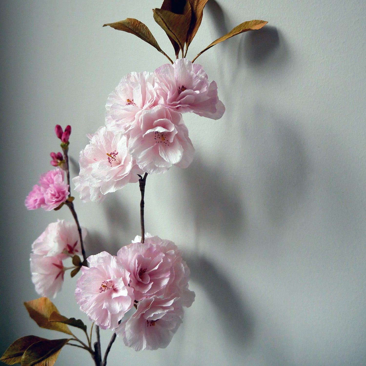 The Sakura cherry blossom branch is handcrafted from Italian crepe paper and coloured with various techniques to achieve lifelike qualities.